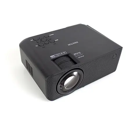 Zvocni izhod. Projektor ima vgrajen stereo zvocnik visoke kakovosti (5 W) za predvajanje videoposnetkov, serij in filmov. Poleg tega ima RCA izhod in Bluetooth za priklop drugih zvocnikov in predvajanje zvoka pri višji glasnosti.