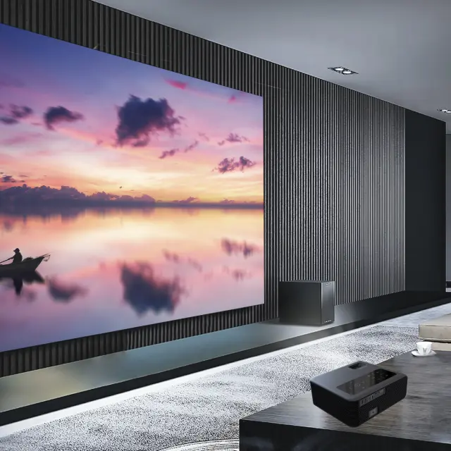 Tehnologija projiciranja. Projektor ima svetilko z do 14.000 lumni, LED-luc z 800 ANSI lumni in žarnico z vec kot 30.000 ur predvajanja. Ponuja Full HD locljivost in je združljiv z vsebino 4K.