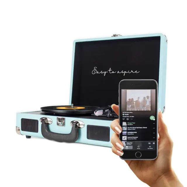 Uživajte v svojih vinilih kjer koli zahvaljujoc temu gramofonu Bluetooth VC400 z vintage kovckom. Digitalizirajte vinile preko reže MicroSD in USB.