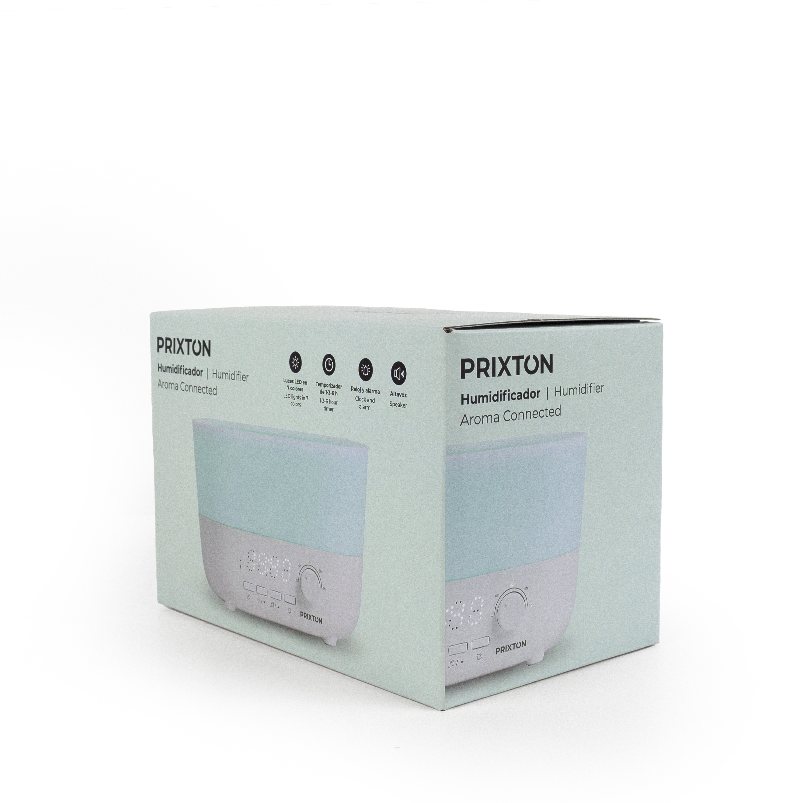 Vlažilnik Aroma Connected PRIXTON ne bo le navlažil vašega doma, temvec ponuja 4 funkcije v enem samem izdelku: vlažilnik, zvocnik, uro in budilko.