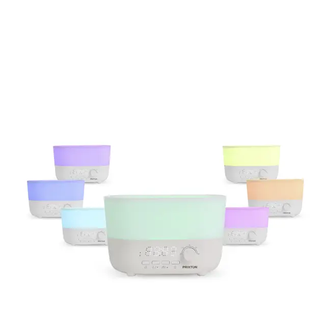 Vlažilnik Aroma Connected PRIXTON ne bo le navlažil vašega doma, temvec ponuja 4 funkcije v enem samem izdelku: vlažilnik, zvocnik, uro in budilko.