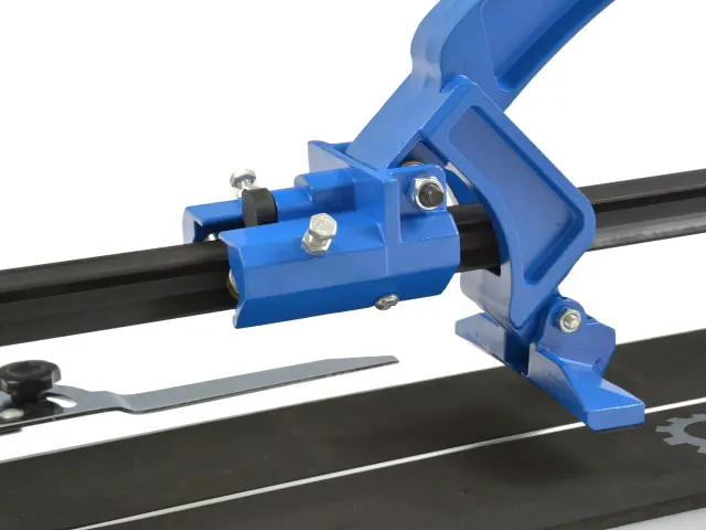 Profesionalna naprava za rezanje ploščic z dolžino delovne površine 800 mm. Vzdržljivo rezilo iz volframovega karbida s plastjo titana za hitro rezanje. Stabilna tirnica z rezalnim mehanizmom na krogličnih ležajih zagotavlja natančen razrez ploščic do debeline 16 mm. Kovinsko ravnilo vam omogoča natančno merjenje reza in nastavitev kota reza v območju od 0 do 60 °. Aluminijasto podnožje z gumijastimi nogami zagotavlja stabilnost naprave med delovanjem.