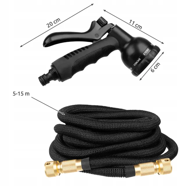 PIŠTOLA Z 8 VRSTAMI PRŠILK – vrtna cev je opremljena z 8 vrtljivimi šobami. Z njegovo pomočjo bomo zalivali zelenico, rože, okopali hišne ljubljenčke in oprali avto. Pritisk vode lahko nastavljate na dva načina: z vijakom ventila in premičnim ročajem. Pištola ima tudi funkcijo zaklepanja – samo odvrnite kovinski kavelj v pištoli – voda bo nato stekla, ne da bi morali neprestano pritiskati na sprožilec pištole.