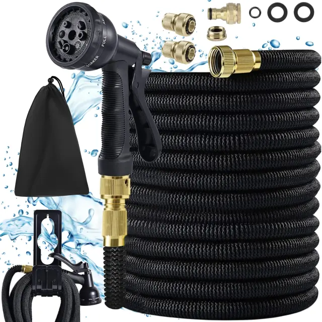FLEKSIBILNA VRTNA CEV IZ LATEKSA – Od danes naprej nič več cevi, ki puščajo! Model znamke GARDLOV ima kovinske spoje in trojno cev iz lateksa, tako da bodo puščanja postala preteklost. Trdna cev je opremljena z močnimi medeninastimi ventili in priključki. Po priključitvi vode se cev samodejno razširi na 15 metrov in se po končanem delu vrne na 5 metrov. Zaradi svoje prilagodljivosti je zelo enostaven za uporabo in ne zahteva veliko truda.