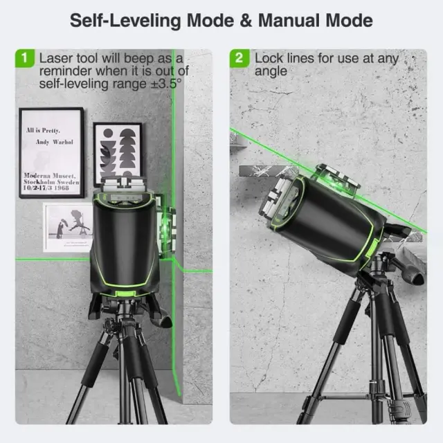 Samodejni samonivelir vedno zagotavlja 100 % ravne črte in samostojno kompenzira neravnine do 3,5°.