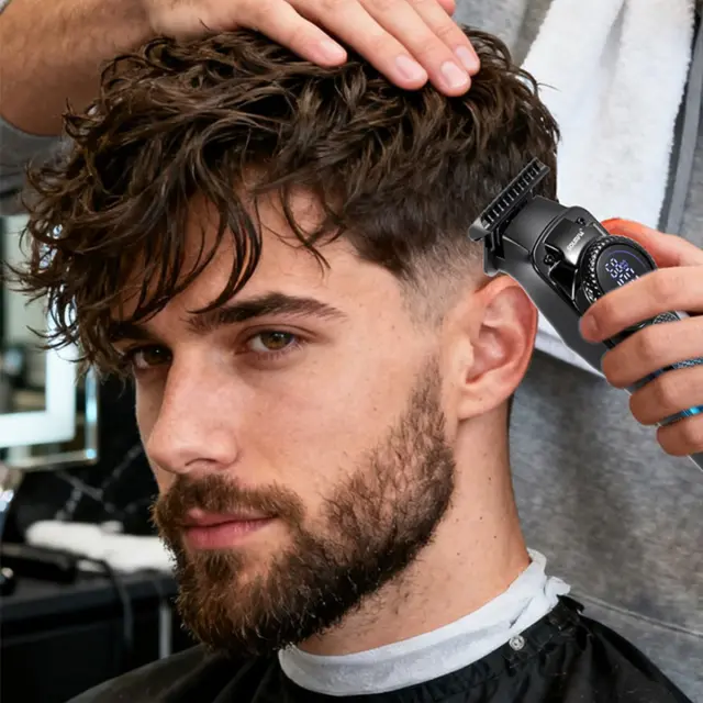 Profesionalni električni strižnik in trimer za lase z LCD zaslonom in USB polnjenjem Blue