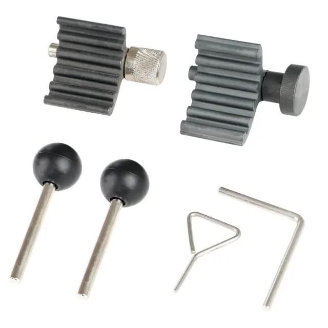 Celovit komplet orodij: Ta 6-delni komplet vsebuje vse, kar potrebujete za blokiranje ročične gredi, odmične gredi in visokotlačne črpalke pri zamenjavi jermena na motorjih VW in Audi.