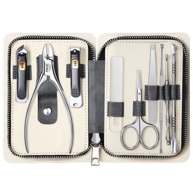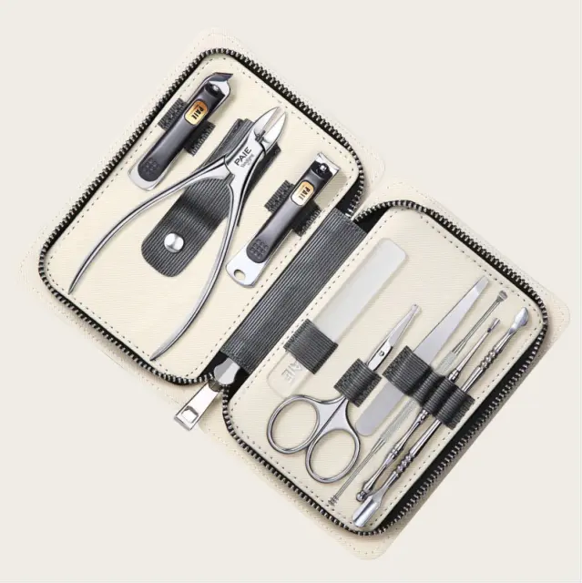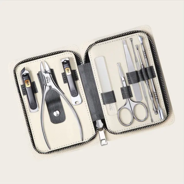 Vsestranski in popoln: Ta 9-delni set je celovita rešitev za vse vaše potrebe po negi nohtov. Vključuje različna orodja, kot so škarje za nohte, škarje za nohte z ostro konico, škarje za nosne dlake, škarje za obrvi, odstranjevalec ogrcev, potiskač obnohtne kožice, pinceta za dlake, pilica za nohte in etui iz PU usnja za priročno shranjevanje in prenašanje.