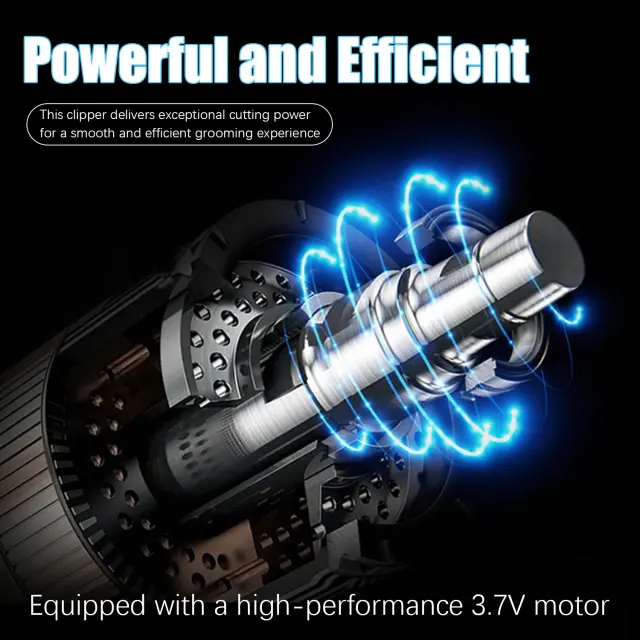 Zmogljiv in učinkovit: Ta prirezovalnik, opremljen z visokozmogljivim 3,7 V motorjem, zagotavlja odlično moč za gladko in učinkovito izkušnjo prirezovanja. Z lahkoto drsi tudi skozi najdebelejšo dlako, zaradi česar je striženje dlake vašega ljubljenčka neverjetno enostavno.