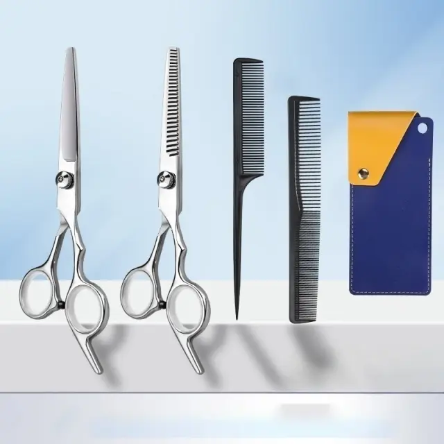 Profesionalni set frizerskih škarij: Nastavljive škarje, redčilne škarje in etui
