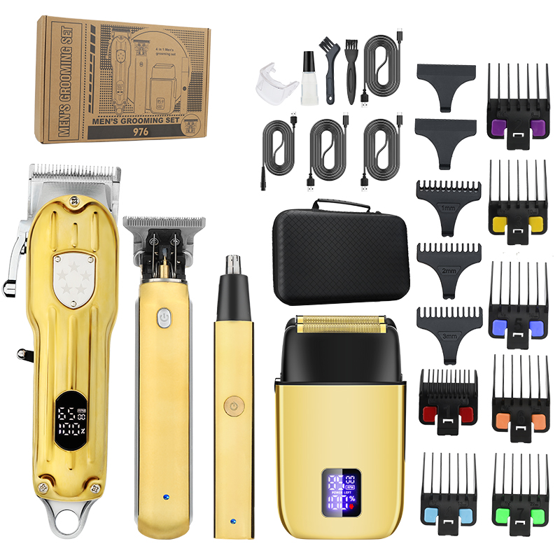 Vsestranski in popoln: Ta 4-v-1 komplet vključuje strižnik polne velikosti, prirezovalnik, brivnik in prirezovalnik dlak v nosu, ki zadovolji vse vaše potrebe po negi. Različni nastavki in glavniki zagotavljajo vsestranskost za različne pričeske in dolžine.