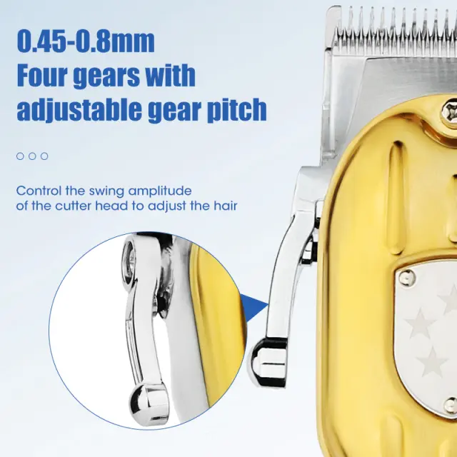 Zmogljiva zmogljivost: Opremljen z visokohitrostnim motorjem, ta komplet strižnikov zagotavlja izjemno zmogljivost striženja, ki omogoča gladko in enostavno striženje las. Ostri rezili zagotavljajo natančnost in preprečujejo zatikanje ali vlečenje, zaradi česar je primeren za vse tipe las.