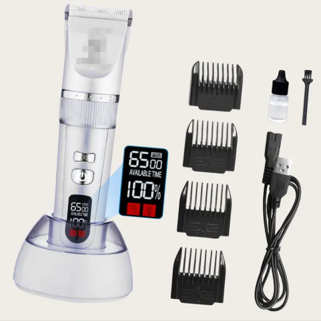 Močan motor: Opremljen z visoko zmogljivim motorjem, ta strižnik zagotavlja izjemno moč rezanja za gladko in učinkovito izkušnjo nege. Brez težav drsi skozi tudi najdebelejšo dlako, preprečuje zatikanje in vlečenje, zaradi česar je nega enostavna tako za vas kot za vašega kosmatega prijatelja.