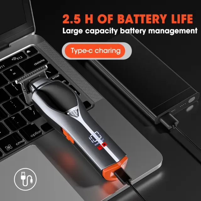 Dolga življenjska doba baterije: S 2000 mAh litijevo baterijo ta strižnik zagotavlja do 150 minut neprekinjenega delovanja z enim polnjenjem. Priročno polnjenje prek USB omogoča fleksibilne možnosti polnjenja, zaradi česar je idealen tako za domačo kot profesionalno uporabo.
