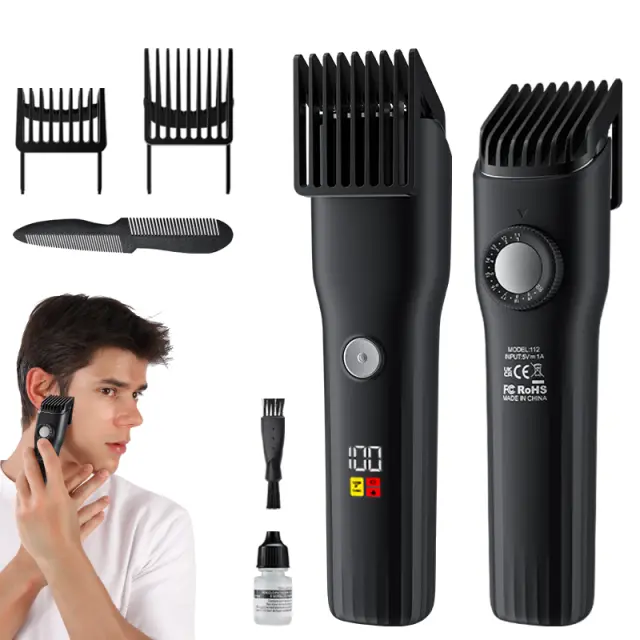 Natančno striženje: z visokokakovostnimi rezili iz nerjavečega jekla in nastavljivo ročico za striženje ta strižnik zagotavlja natančno in enakomerno striženje. Strižniku sta priložena 2 distančna glavnika, tako da lahko dosežete različne dolžine las.