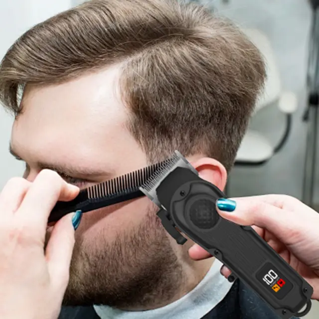 Digitalni zaslon: Integrirani LCD jasno prikazuje preostalo življenjsko dobo baterije, kar vam omogoča spremljanje ravni napolnjenosti in izogibanje nepričakovanim prekidom med negovalnimi sejami. Ta funkcija zagotavlja dodatno udobje in zagotavlja, da ste vedno pripravljeni na popolno striženje. Nič več ugibanja ali izpada energije med striženjem – ohranite nadzor z našim intuitivnim digitalnim zaslonom.