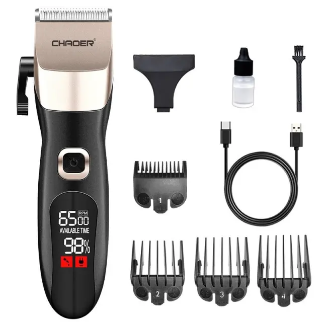 Brezžičen in polnljiv: Prosimo, upoštevajte: to niso originalni deli. Brezžična zasnova tega strižnika za hišne ljubljenčke zagotavlja maksimalno prilagodljivost in udobje med negovalnimi sejami. Napaja ga 1500 mAh litijeva baterija, ki omogoča dolgo delovanje približno 3-4 ure z enim polnjenjem. Pametni LCD zaslon prikazuje preostalo raven baterije, tako da boste vedno vedeli, kdaj je čas za ponovno polnjenje. Strižnik se lahko popolnoma napolni v samo 2-3 urah prek USB-ja, kar olajša napajanje doma ali na poti.