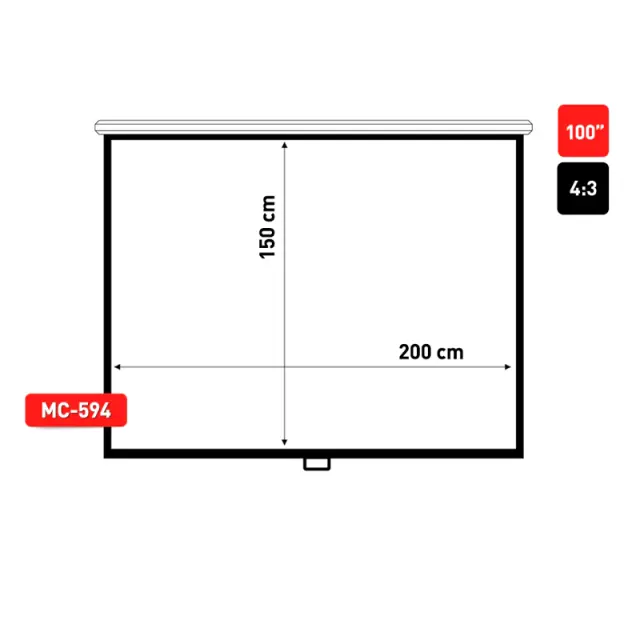 Maclean MC-594 je projekcijsko platno, z briljantno mat belo površino in značilno črno obrobo za zagotavljanje podrobne in natančne slike. Čvrsta osmerokotna kovinska škatla. Lahko se namesti na steno ali strop, mat belo platno pa je trpežno in enostavno za čiščenje.