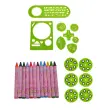 Projektor za risanje vsebuje podstavek 38x38 cm in projekcijsko lučko 35,5 cm. Projecira sliko na papir,ki ga vstavite na podlago.Priloženih je 6 projekcijskih šablon s 6 slikami (36 različnih slik), 12 pastelnih barvic in šablone za pisanje črk. Za delovanje potrebujete 3 AA baterije- niso priložene. Primerno za otroke od 3 let dalje.