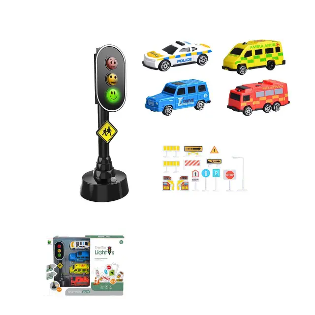 Ta komplet vsebuje štiri podrobne avtomobile in prometne znake, ki otroku pomagajo pri učenju osnovnih prometnih pravil. Prava zvezda tega kompleta je semafor na baterije! Ne samo, da spreminja luči kot pravi semafor, temveč oddaja tudi avtentičen zvok, ki otroku zagotavlja popolnoma interaktivno izkušnjo. Prepričajte se sami, kako lahko ta komplet razširi igro vašega otroka in hkrati izobražuje o pomembnih pravilih prometa! Kot nalašč za predšolske otroke, da se sami pripravijo na šolo.