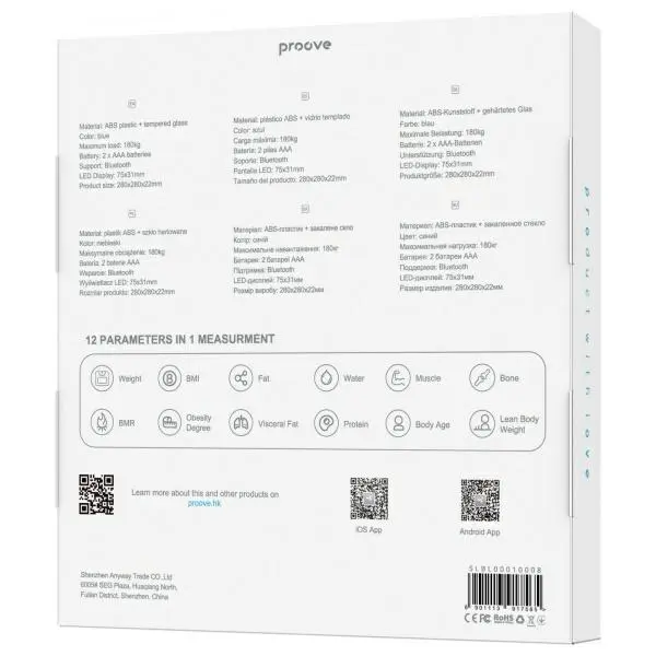 PROOVE SMART TEHTNICA BALANCE LITE BLUETOOTH ZA SPREMLJANJE TELESNE TEŽE