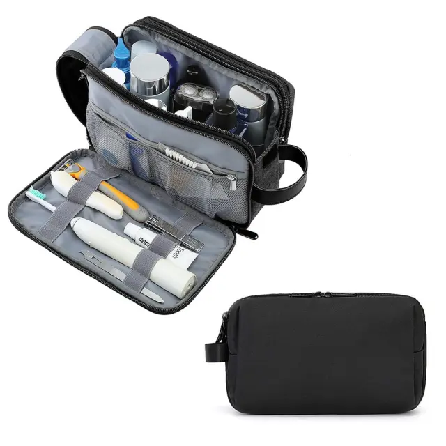 Toaletna torbica za moške: Praktična in elegantna toaletna torbica s prenosnim ročajem, popolna za potovanja in vsakodnevno uporabo. Z veliko prostornino in številnimi predelki za organizirano shranjevanje je popoln za prenašanje vseh vrst higienskih pripomočkov, ki jih morda potrebujete.