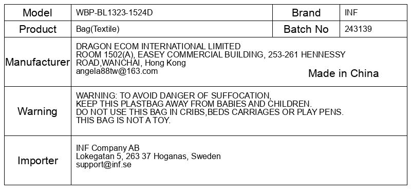 OPOZORILO: DA BI SE IZOGNILI NEVARNOSTI ZADUŠITVE, HRANITE TO PLASTBAG PROČEL DO DOJENČKOV IN OTROK. NE UPORABLJAJTE TE TORBE V JISLICI, VOZIČKIH POSTELJ ALI IGRALIH. TA TORBA NI IGRAČA.