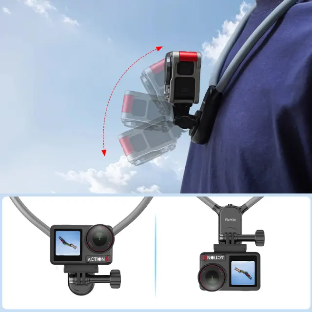 Varno in stabilno snemanje: Ta nosilec za vrat, zasnovan za aktiven življenjski slog, ima prsni pas za večjo stabilnost med aktivnostmi z visokim vplivom, kot so tek, kolesarjenje in smučanje. Varen mehanizem za zaklepanje zagotavlja, da vaša kamera ostane na mestu, tudi med ekstremnimi gibi. Uživajte v brezskrbnosti, saj veste, da je vaša naprava varna in da bodo vaši posnetki gladki in stabilni, kar vam omogoča, da se osredotočite na svojo dejavnost, ne da bi vas skrbelo za vašo opremo.