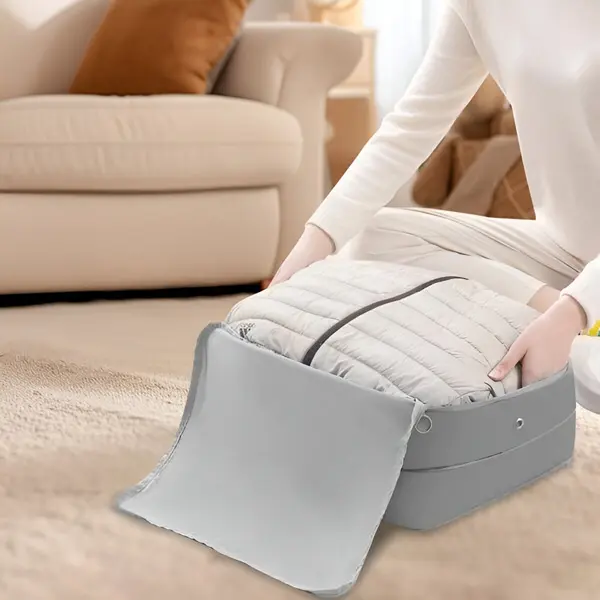 Brez težav stisnite oblačila, odeje in drugo brez vakuuma ter sprostite veliko dodatnega prostora v kovčku ali omari.