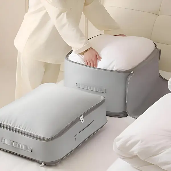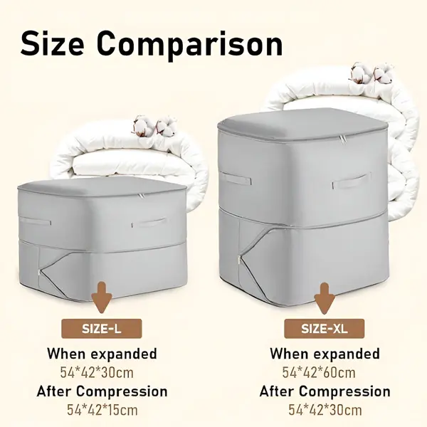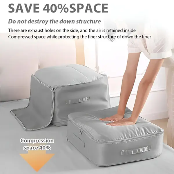Brez težav stisnite oblačila, odeje in drugo brez vakuuma ter sprostite veliko dodatnega prostora v kovčku ali omari.
