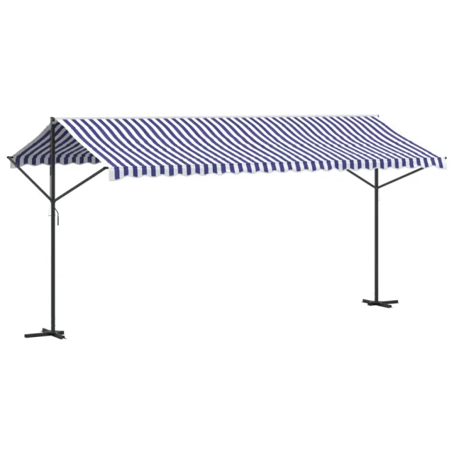 Prostostoječa tenda - Senčniki modra in bela 500x300 cm krem blago jeklo