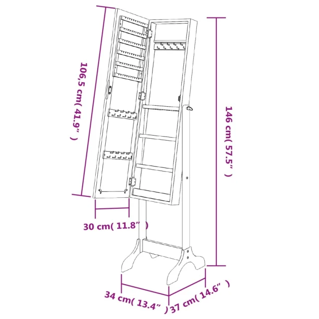 Prostostoječe Ogledalo - Zrcalo - Kozmetično ogledalo belo 34x37x146 cm