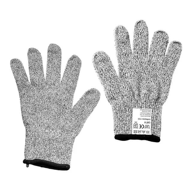 Westmark rokavice vas bodo ščitile pred urezninami med rezanjem, lupljenjem ali ribanjem živil - saj zagotavljajo 5 stopnjo zaščite pred rezi (v skladu z EN 388-2019). Izdelane so iz sintetičnih vlaken visoke trdnosti (PA, Spandex PE). Zagotavljajo visoko udobje pri nošenju in dobro prileganje. Velikost rokavic je 8 (L) . Po uporabi jih lahko enostavno operete v pralnem stroju na 30 °C. POZOR: Pred vsako uporabo preverite njihovo brezhibnost!