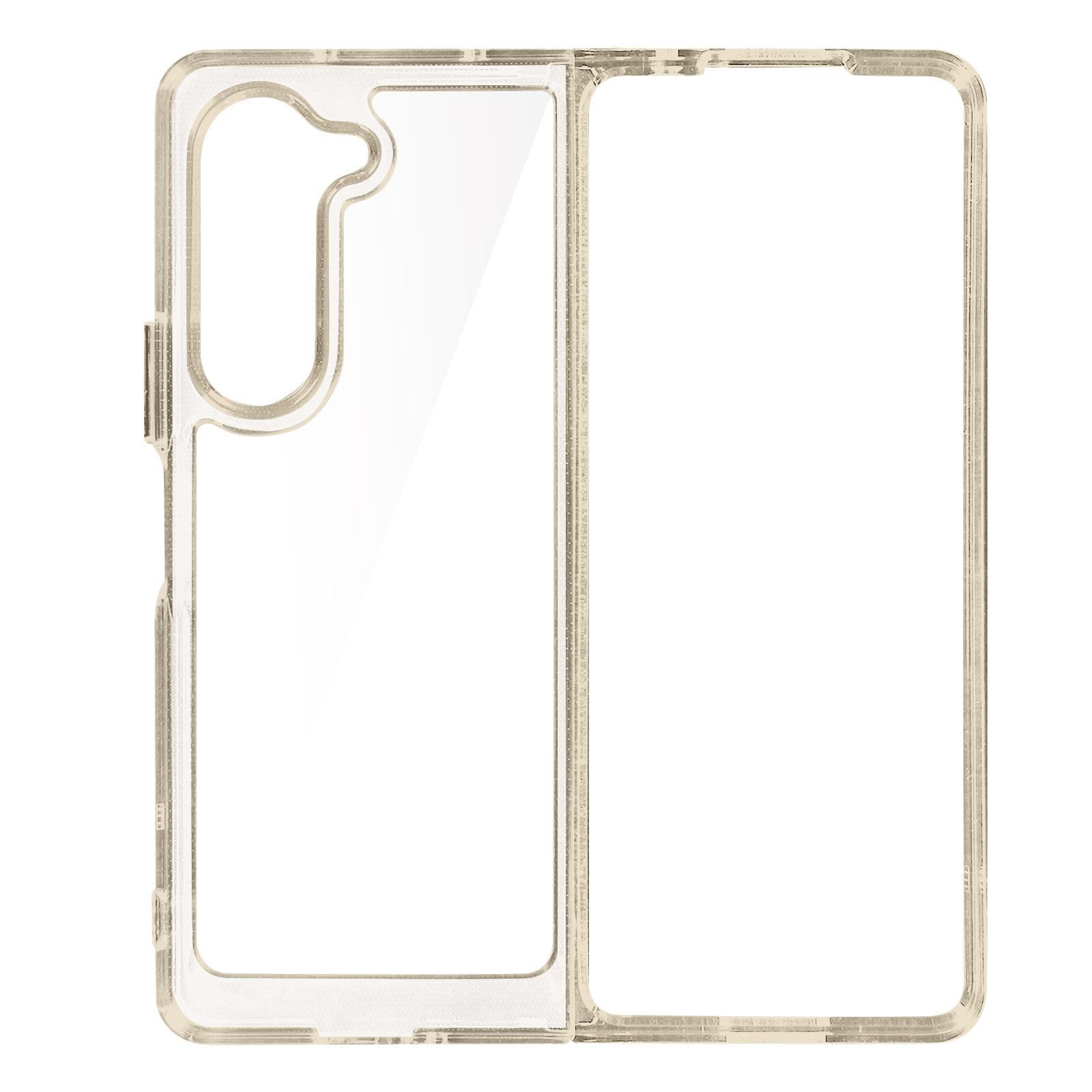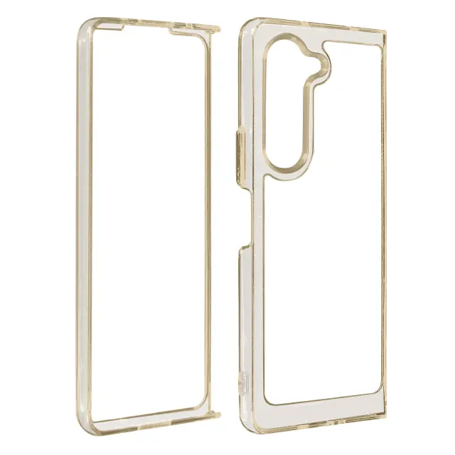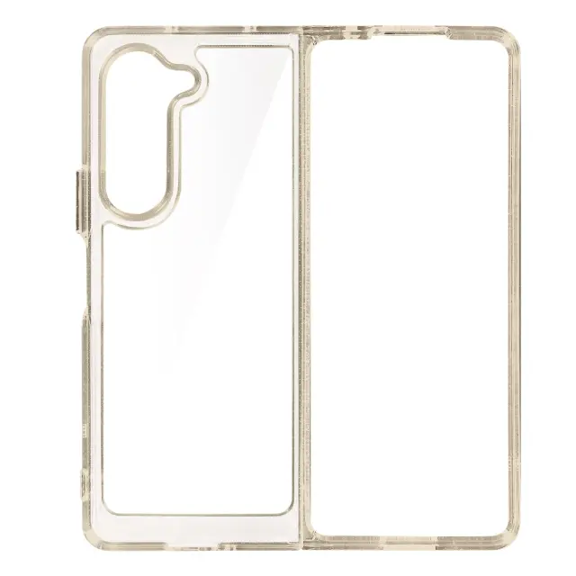 Ovitek s sivim obrisom iz serije April Case za Samsung Z Fold 5. Njegovi vogali so opremljeni s tehnologijo zracne blazine za blaženje bocnih udarcev. Njegova prozorna hrbtna stran ves cas ohranja originalni dizajn mobilnega telefona. Dostopne funkcije.