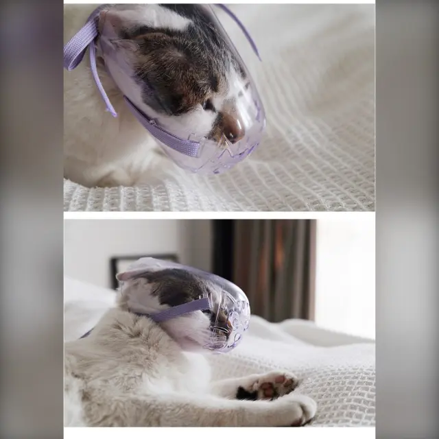 Varno ravnanje z mačko: Prozoren nagobčnik za mačke je zasnovan za varno in zanesljivo ravnanje z vašo mačko med nego, kopanjem ali dajanjem zdravil. Učinkovito preprečuje ugrize in praske, kar zmanjšuje stres tako za vas kot za vašega mačjega prijatelja. Prozorna zasnova vam omogoča, da ves čas spremljate stanje vaše mačke in zagotovite njeno dobro počutje. Idealen za obiske veterinarja, striženje nohtov in druge situacije, kjer je potrebno zadrževanje, ta nagobčnik olajša in varno oskrbo hišnih ljubljenčkov. Je nepogrešljivo orodje za vsakega lastnika mačke, ki želi zmanjšati stres in morebitne poškodbe med ravnanjem.