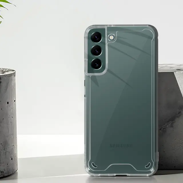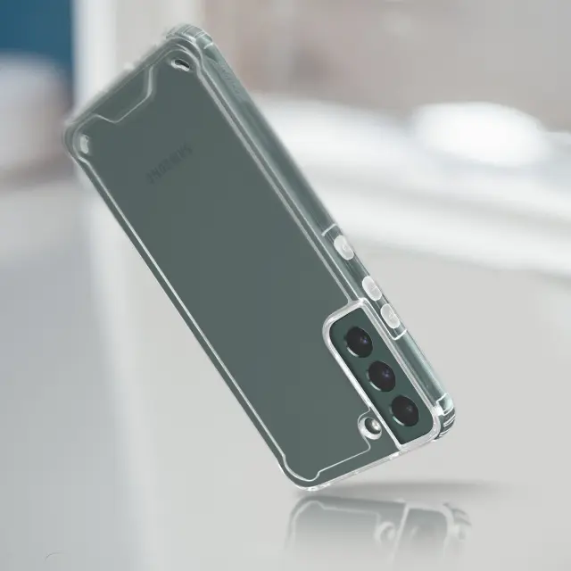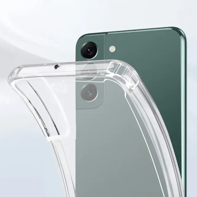 Zaščitna torbica posebej oblikovana za Samsung Galaxy S22 Plus. Hrbtna stran iz trdega polikarbonatnega kristala, ki pušča vidne čudovite barve pametnega telefona. Fleksibilna silikonska kontura za enostavno namestitev. Minimalistična zaščita, ki ostaja odporna na vsakodnevne nesreče.