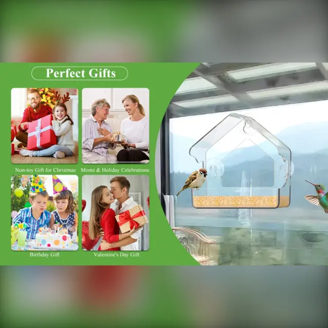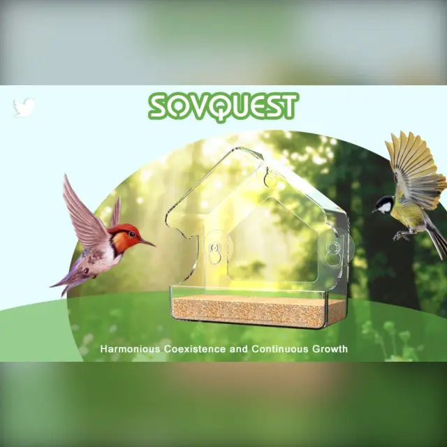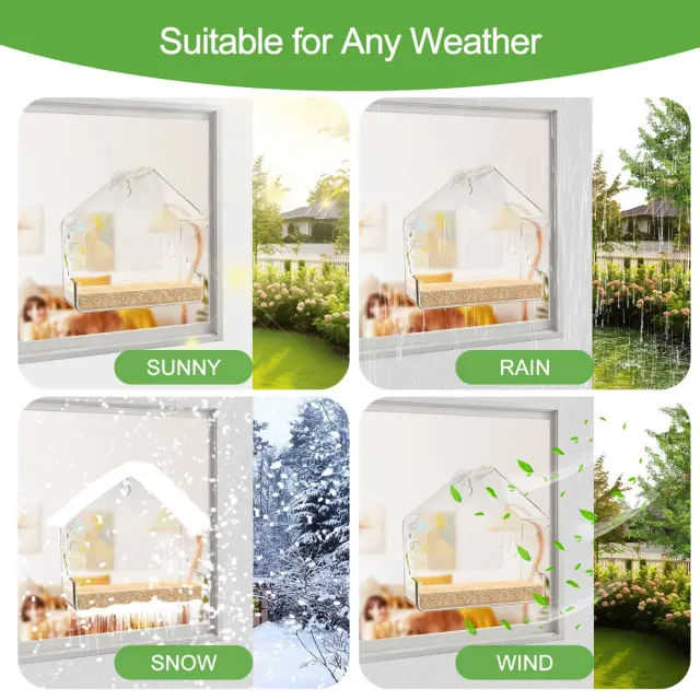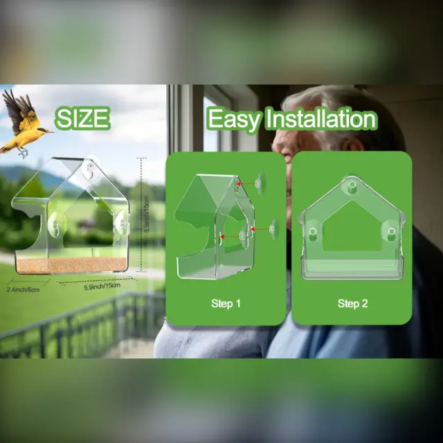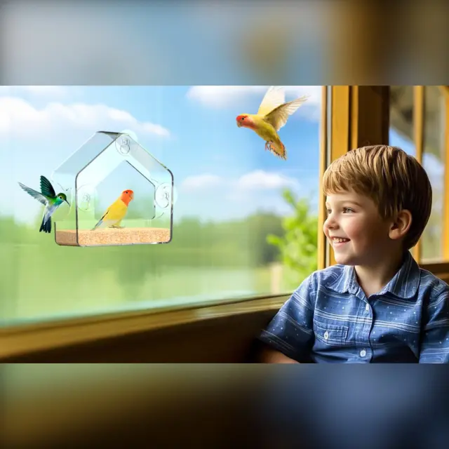 Prozoren podajalnik za ptice za okna - PMMA, močni priseski, odporen na vremenske vplive