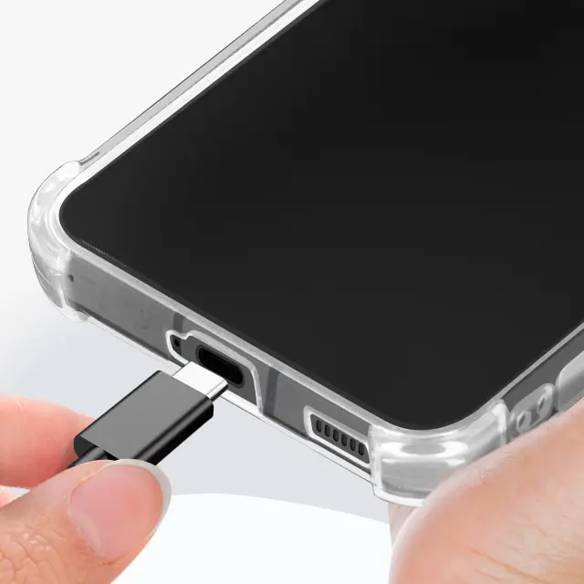 Ovitek za zaščito pred vsakodnevnimi udarci in praskami. Ojačani vogali za blaženje udarcev v primeru padca. Prozoren, ščiti in hkrati ohranja dizajn vašega telefona.