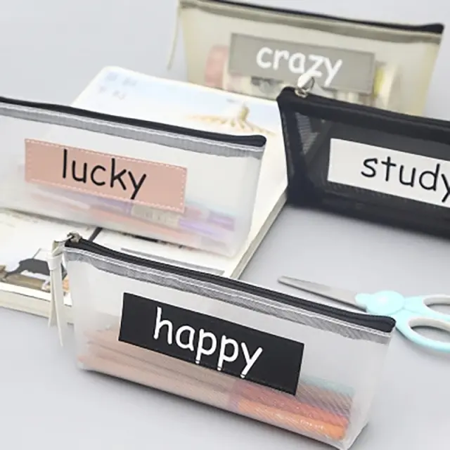 Prozorna torbica za pisala z mrežasto zadrgo Transparent sos