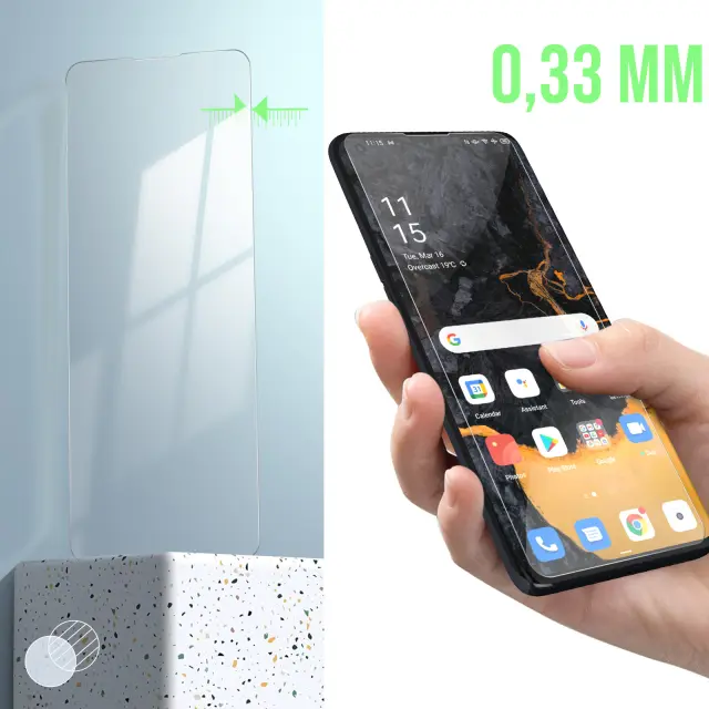 Ta folija Oppo Find X3 Pro je izdelana iz prozornega in izjemno odpornega kaljenega stekla. Zašcita zaslona z indeksom trdote 9H, ki absorbira udarce in praske. Njegov oleofobni premaz proti prstnim odtisom nudi udobje pri uporabi.