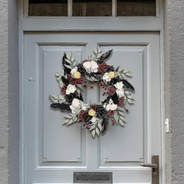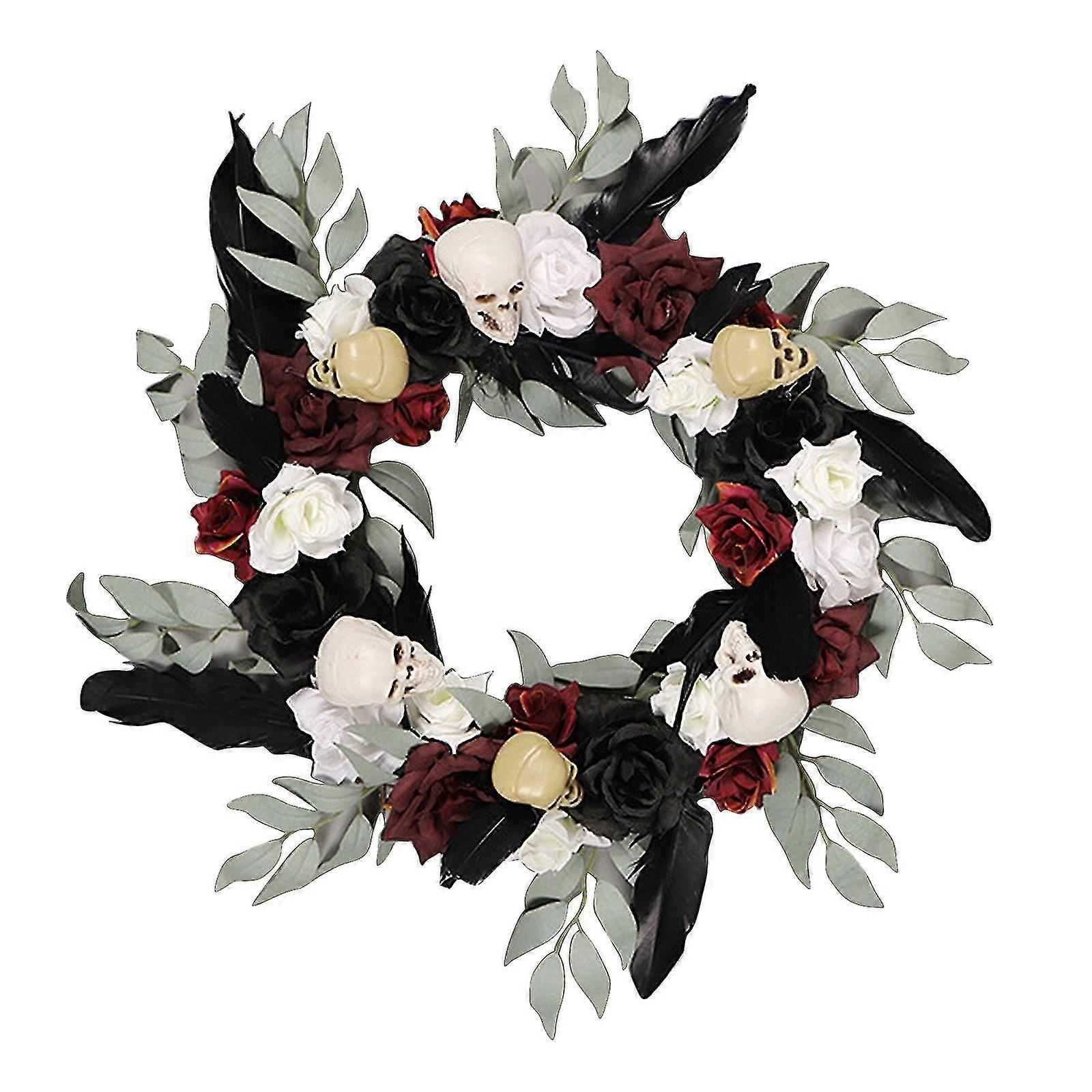 Prstan iz ratana, ki visi na steni, umetna girlanda za zabavo za noč čarovnic, svilena tkanina, material, lobanja, dekor, venec, obešalnik za vrata