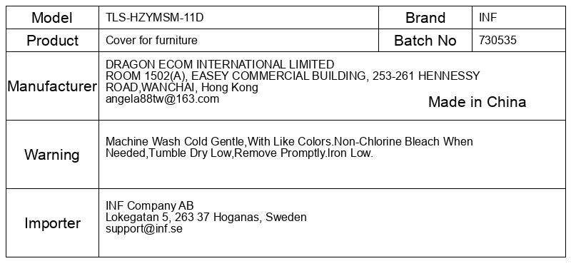 Strojno pranje, hladno, nežno, s podobnimi barvami. Belilo brez klora, ko je potrebno, suho v sušilnem stroju, takoj odstranite.
