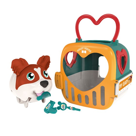 *Različni psi *Prodaja po kosu • Presladki psiček, ki laja veselo melodijo in začne hoditi, ko sliši svoje ime ali določeno dejanje. • Prihaja s psečjo hiško, ki služi za shranjevanje dodatkov in psička po končani igri. • Psiček, ki reagira na zvok • Psečja hišica • Dodatki (posoda za vodo, kost, ...)