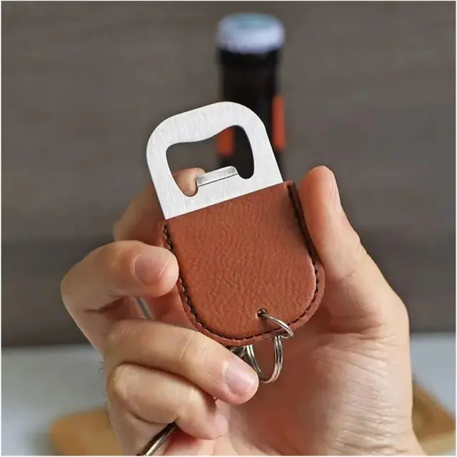 PU Leather Stainless Steel Keychain Can Opener - Unique Beer Bottle Opener Beer Can Opener, Beer Gift for Dad, Man, He, Husband, Boyfriend