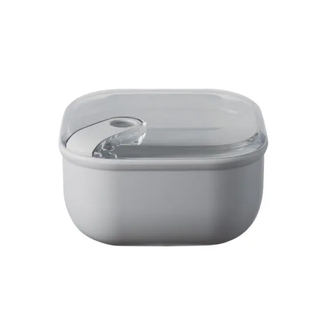 Inovativna in patentirana hermetična posoda Pull Box (16 x 16 cm) je idealna za shranjevanje, prenašanje in pogrevanje živil. Patentiran sistem zapiranja ohranja svežino in zrakotesnost živil, preprečuje kapljanje ter ohranja trdno zapiranje kljub padcu ali nagnjenosti posode. Prav zaradi tega je posoda Pull Box enostavna za prenašanje v vrečkah oz. nahrbtnikih, kjer ni mogoče zagotoviti vodoravnega položaja posode. Eleganten dizajn s prozorno posodo je zasnovan za vse, ki so organizirani in imajo radi vse pod nazorom. Kvadratna oblika omogoča zasedenje celotnega razpoložljivega prostora, prozoren pokrov pa olajša prepoznavanje hrane v notranjosti, brez odpiranja posode.