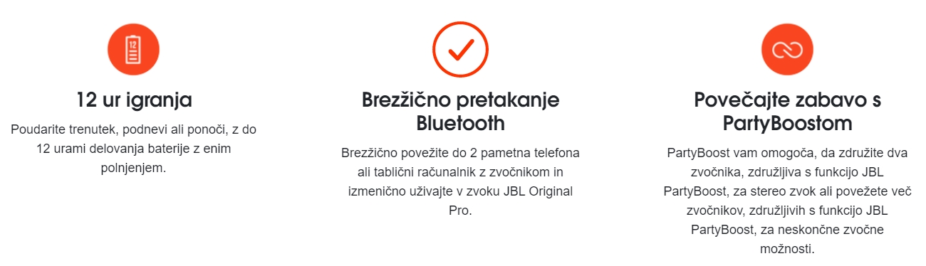 Uživali boste v čistem, drznem zvoku JBL Original Pro v vseh smereh z ločenim visokotoncem in nizkotoncem, medtem ko pasivna membrana na dnu zvočnika zagotavlja globoke nizke tone – tako da lahko resnično začutite glasbo.