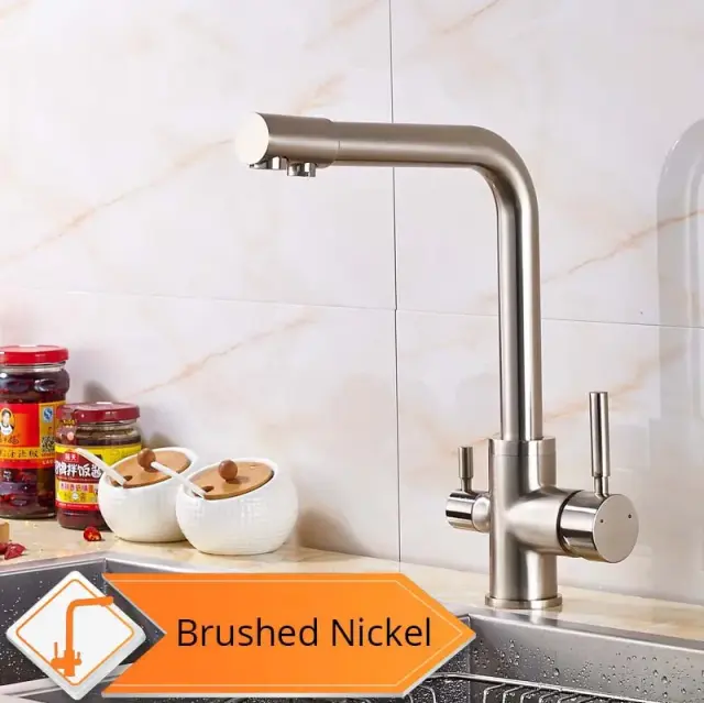 Pultni dvojni kuhinjski pipa, filtracija pitne vode, 360-stopinjska rotacija, brušeni nikelj