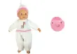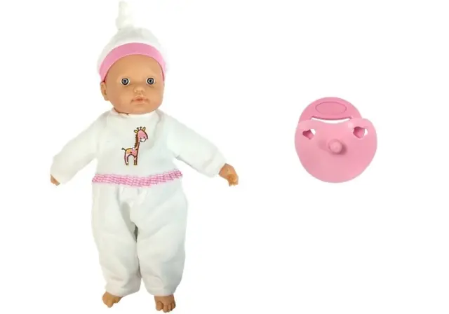 Lutka je oblečena v belo pižamo z rožnatimi elementi. Oblačila se zlahka odstranijo in operejo, kar olajša vzdrževanje čiste.