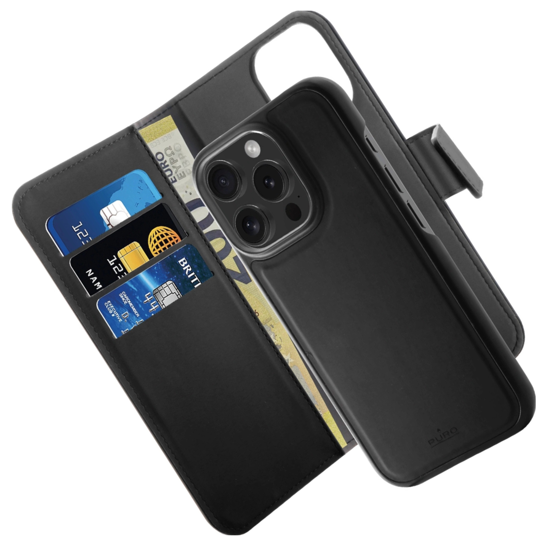 Elegancija za vsakdanje življenje? S snemljivo torbico Puro Wallet za MagSafe je to mogoče. Klasična črna barva, razkošno eko usnje in funkcionalnost denarnice naredijo vaš ovitek več kot le zaščito. Je tudi del vašega življenjskega sloga. Zahvaljujoč tehnologiji MagSafe lahko enostavno napolnite svoj telefon, ne da bi odstranili etui, prilagodljiv dizajn pa omogoča udoben dostop do vseh vrat in gumbov. Puro Wallet je etui, ki spremeni vaš pristop k vsakodnevnim pripomočkom.