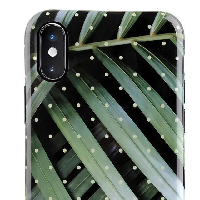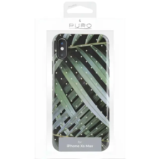 Eleganten tropski vzorec v zelenih in temnih odtenkih, ki spominja na eksotiko in sodobnost. Visokokakovostni trdi polikarbonat in mehki materiali TPU za odlično odpornost proti udarcem in praskam. Premaz z visokim sijajem in zaščitni obroč za fotoaparat, ki absorbira svetlobo, za dodaten slog in varnost. Tanka in lahka zasnova, ki se popolnoma ujema z obliko telefona iPhone XS Max.